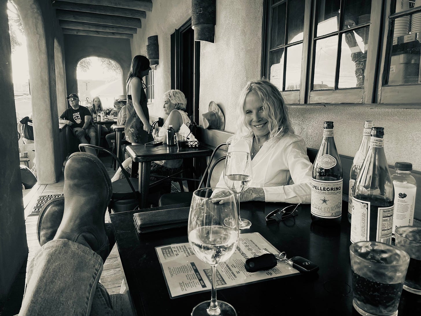 A veranda in Taos where the Tiwa Indians, Hispanos and calaveras have watched with bemused impunity the histrionics of United States electoral politics for many centuries…